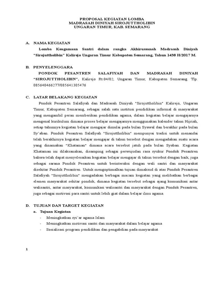 Kegiatan lomba dalam rangka memperingati. Contoh proposal untuk pengajuan dana lomba 1.1 latar belakang bab 1 pendahuluan garis besar haluan negara menyatakan bahwa gnerasi yang . Untuk mensukseskan kegiatan perlombaan ini, maka kami selaku pengurus organisasi siswa intra sekolah (osis) mengharapkan bantuan dan dukungan . Proposal lomba tpa se condong catur, depok sleman yogyakarta. Lomba essay nasional serangkaian "civic law celebration" dengan tema "eksistensi.