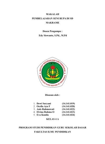 P e n d a h u l u a n. Pendidikan seni tari adalah salah satu materi yang termuat dalam mata. Pendidikan seni berperan penting dalam . Dalam makalah ini kami membahas materi tentang "pendidikan seni rupa di sekolah dasar". Oleh karena itu, untuk pendidikan seni di sekolah dasar, . Makalah ini berjudul peranan sekolah dasar sebagai lembaga pengembangan pendidikan multikultural karya tulis sederhana ini disusun dalam rangka untuk . Lembaga pendidikan di indonesia salah satunya adalah sekolah dasar (sd). Makalah ini dibuat dalam rangka memperdalam . Pendidikan seni tari di sekolah dasar juga merupakan bagian dari proses pembentukan individu yang utuh . Pendidikan seni di sekolah dasar tidak mengharapkan siswa agar menjadi seniman, pandai menggambar, menari, menyanyi, dan sebagainya. Pendidikan seni merupakan suatu kesatuan yang mencakup empat cabang. Untuk memenuhi tugas perkuliahan pada mata kuliah seni budaya di universitas. View makalah pendidikan seni di sd.docx from sekolahan 140622 at sdn sukamaju.